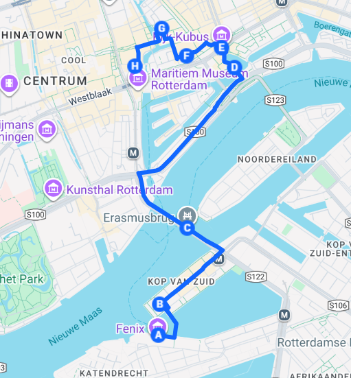 - We gaan in Rotterdam de volgende route lopen richitng het centrum. Onderweg komen we beroemde Rotterdamse gebouwen tegen.